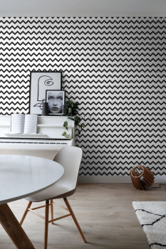 Vliestapete für die Wand, schwarz-weißes Zickzackmuster 139115, Black & White, Esta