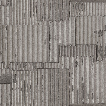 Grau-Silber Vliestapete, Wellblech-Design 347618, Matières - Metal, Origin