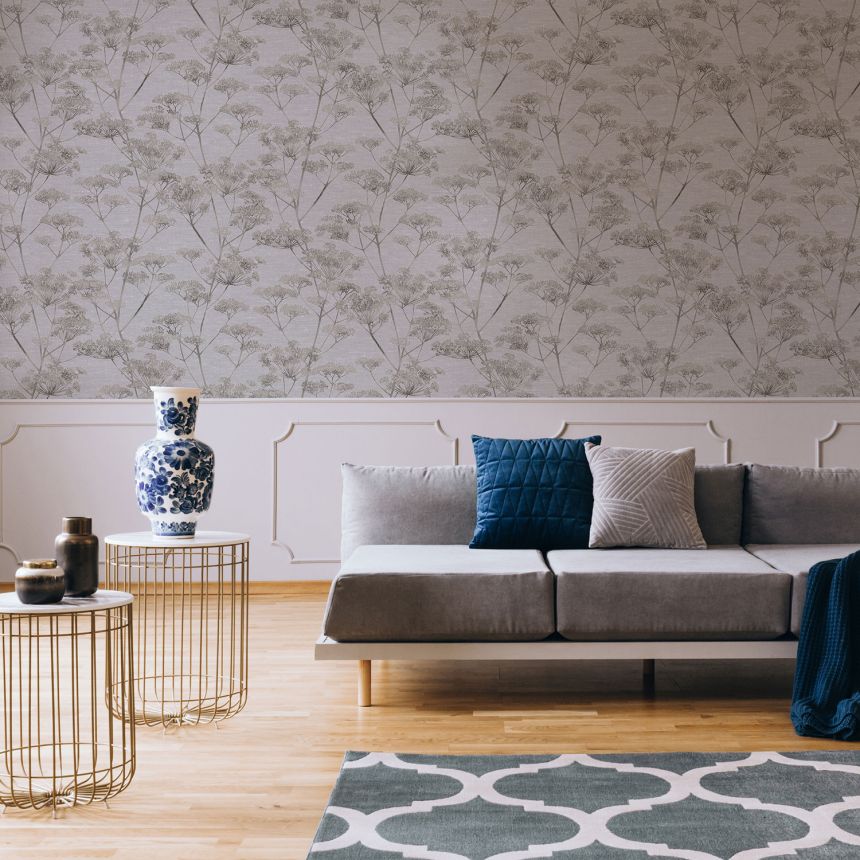 Vliestapete mit Vinyloberfläche. Die Tapete ist grau-silber.