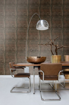 Metallic braune Vliestapete, Imitation von Metallplatten mit Nieten 337231, Matières - Metal, Origin