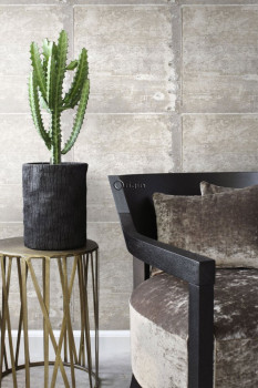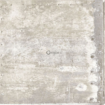 Grau-beige Metallic-Vliestapete, Imitation von Metallplatten mit Nieten 337230, Matières - Metal, Origin