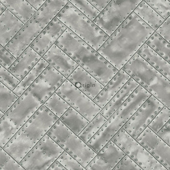 Vliestapete, Imitation grau-silberner Metallplatten mit Nieten 337243, Matières - Metal, Origin