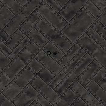 Schwarze Vliestapete, Metallimitatplatten mit Nieten 337240, Matières - Metal, Origin