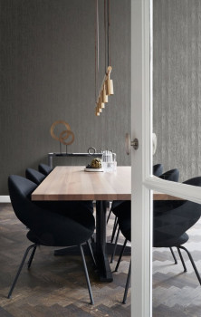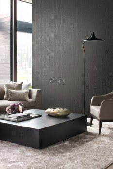 Metallisch graubraune Vliestapete in feiner Holzstruktur.