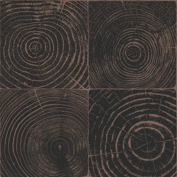Tapete in schwarzbrauner Holzoptik mit Jahresringen, 347550, Matières - Wood, Origin
