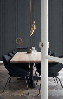 Grau-schwarze Vliestapete für die Wand, Holzbretter-Imitation.