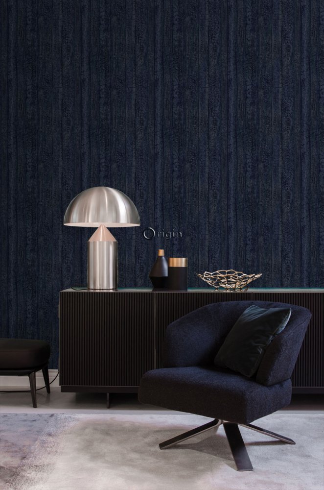 Dunkelblaue Vliestapete für die Wand, Holzstruktur-Muster.