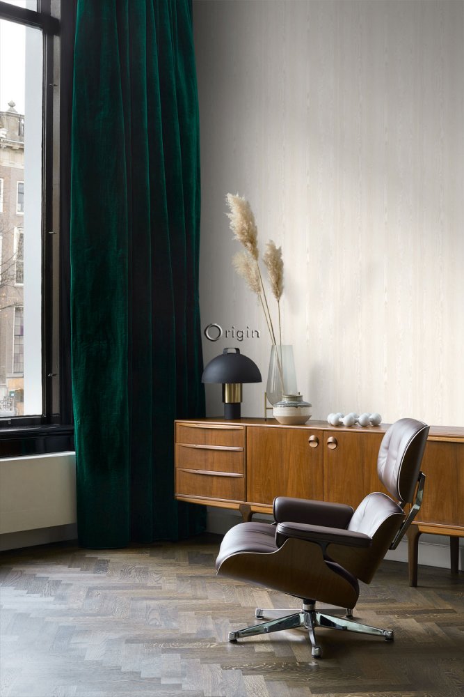 Tapete in grau-cremefarbener Holzoptik, 347521, Matières - Wood, Origin