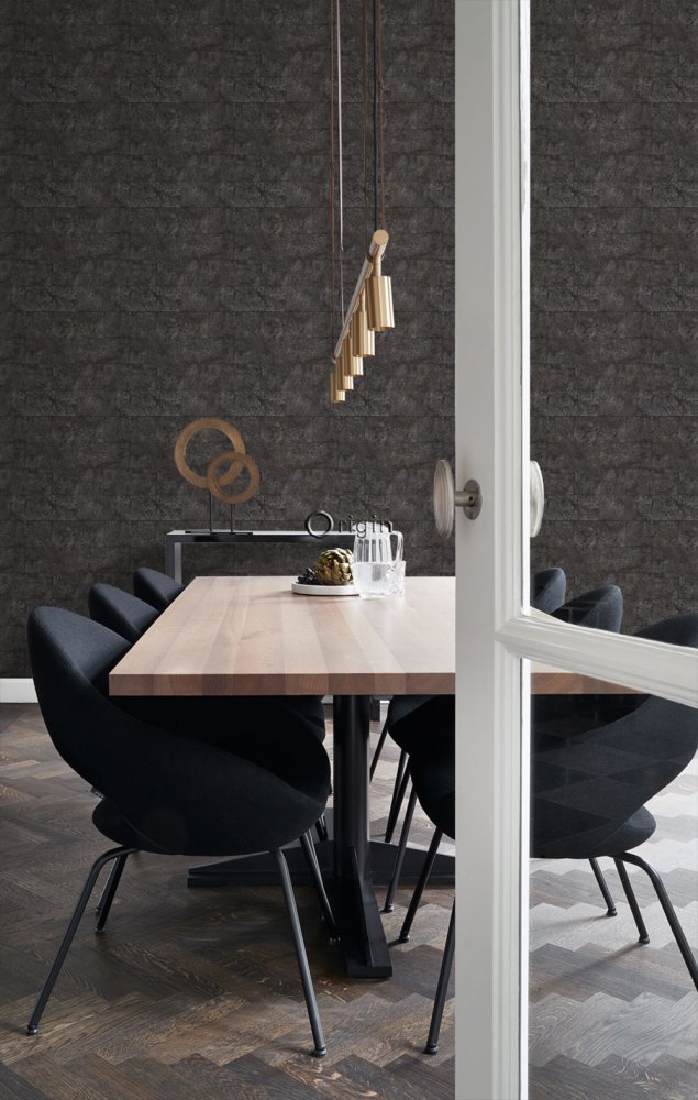 Schwarze Vliestapete, Imitation von Steinfliesen.