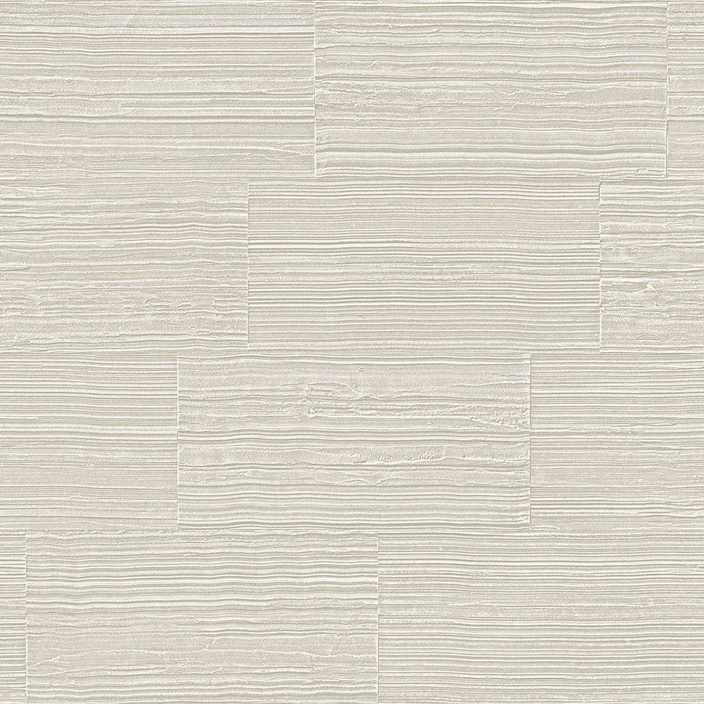 Grau-beige Vliestapete mit metallischem Halbglanz, Imitation von Steinfliesen.