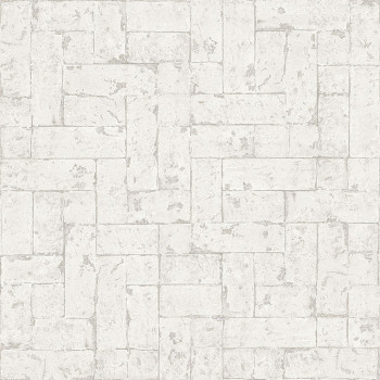 Grau-weiße Vliestapete, Steinverkleidung imitiert 347567, Matières - Stone, Origin