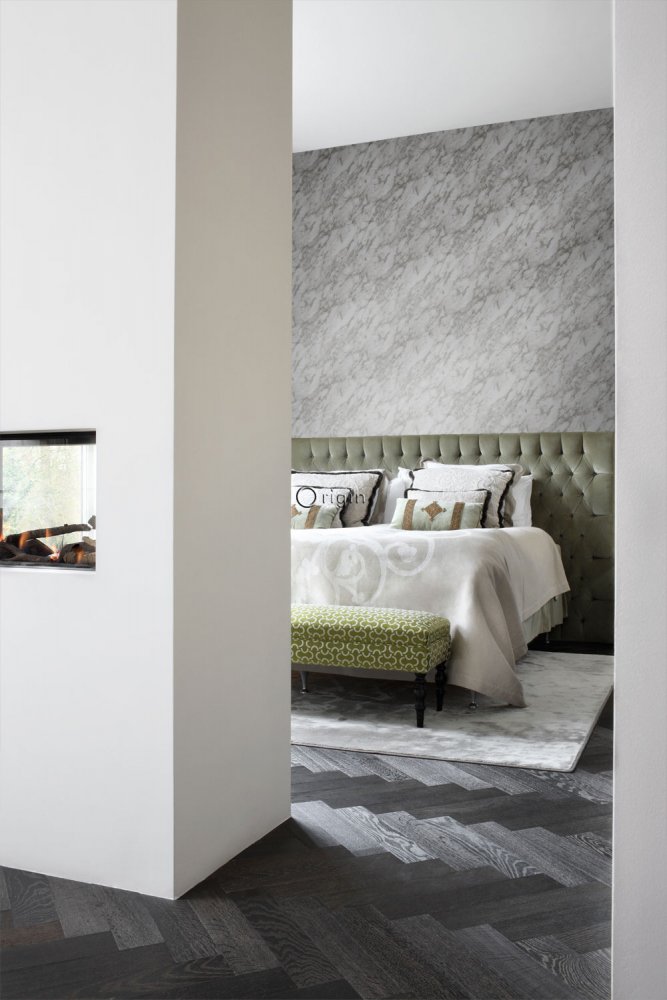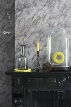 Silberne Vliestapete für die Wand, Marmorimitat 347391, Matières - Stone, Origin