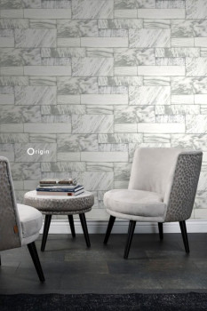Vliestapete, Imitation von grauen Steinfliesen 337254, Matières - Stone, Origin