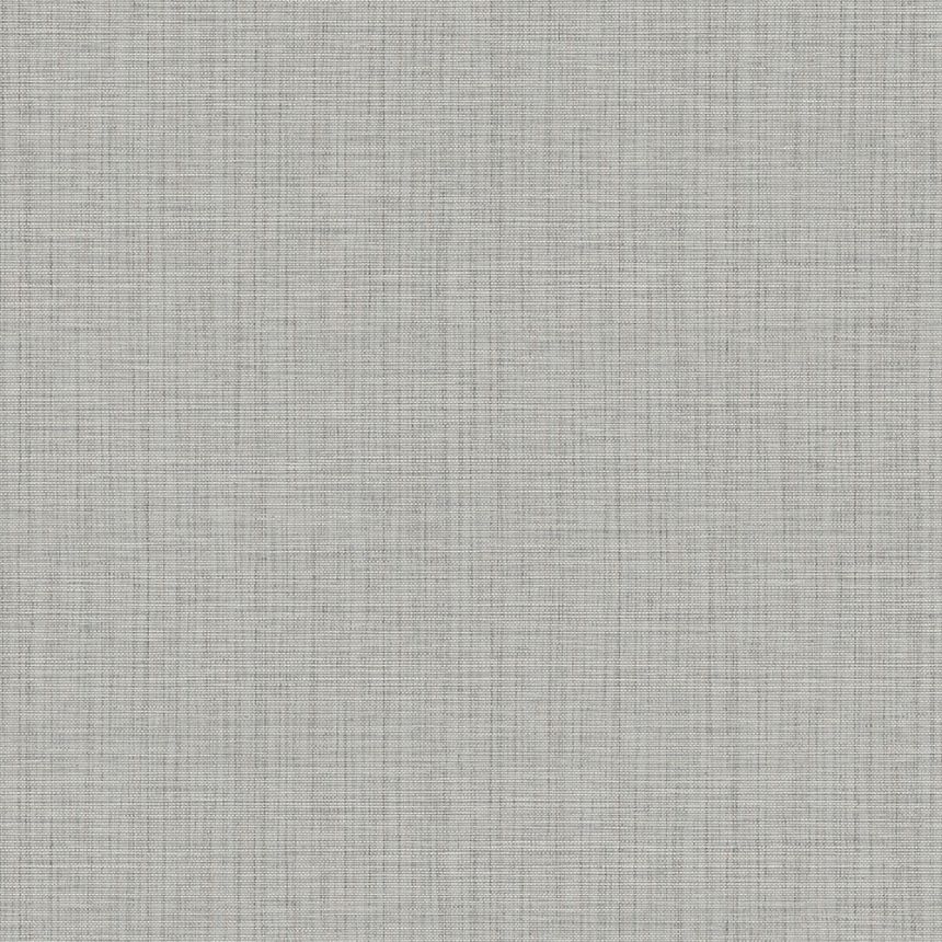 Vliestapete mit Vinyloberfläche - Imitation eines gröberen Stoffes. Die Tapete ist grau-silber, gold gestromte.