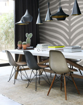 Vlies-Fototapete grau, Zebrafellimitat. Die Tapete hat ein durchgehendes Muster, für eine größere Breite einfach ein weiteres Stück kaufen.