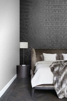 Vlies-Fototapete schwarz, Krokodillederimitat. Die Tapete hat ein durchgehendes Muster, für eine größere Breite einfach ein weiteres Stück kaufen.