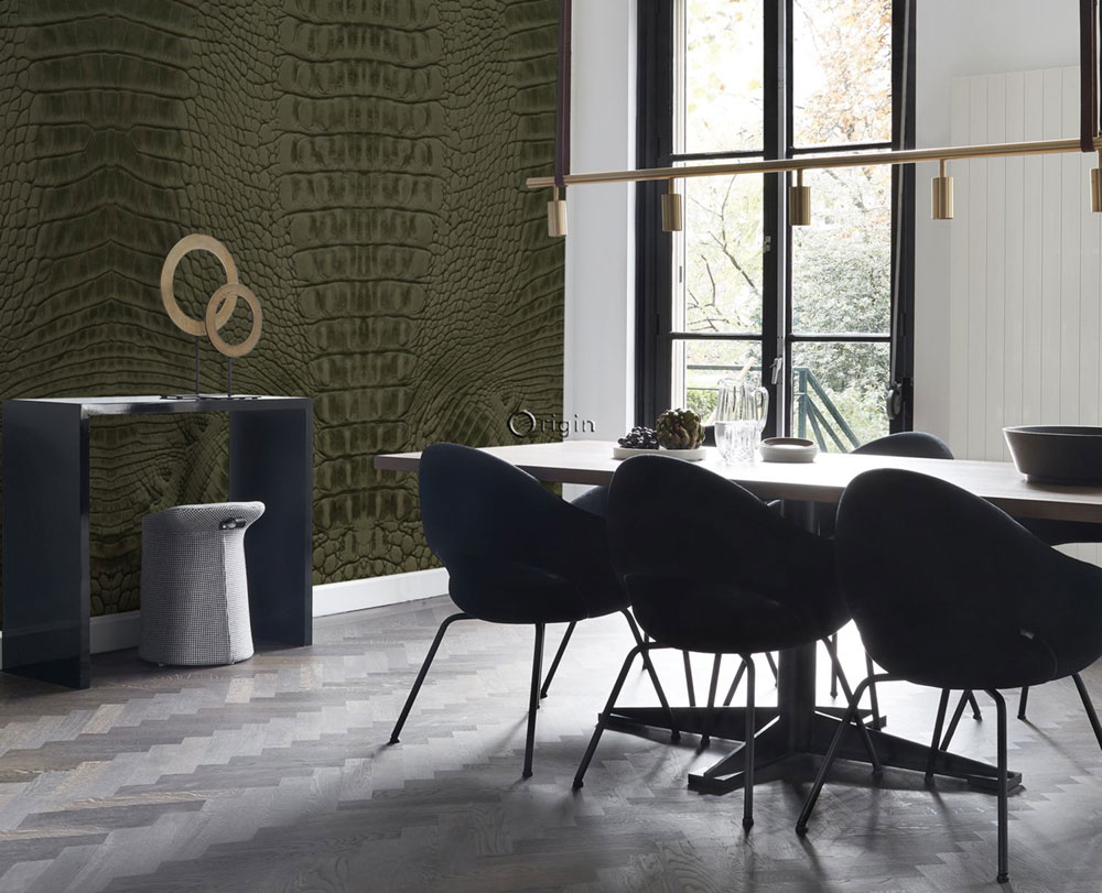 Vlies-Fototapete Braun, Krokodillederimitat. Die Tapete hat ein durchgehendes Muster, für eine größere Breite einfach ein weiteres Stück kaufen.