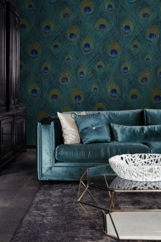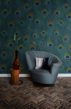 Vlies-Fototapete, Pfauenfedermuster. Die Tapete hat ein durchgehendes Muster, für eine größere Breite einfach ein weiteres Stück kaufen.
