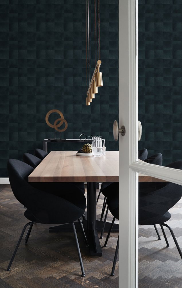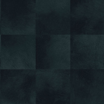 Vliestapete dunkelblau, Fellimitat in Quadraten.