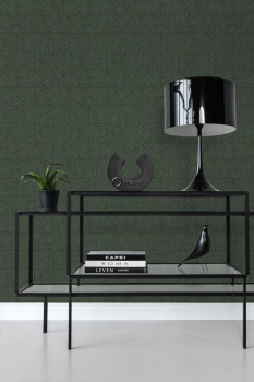 Dunkelgrüne Vliestapete, Schlangenlederimitat.
