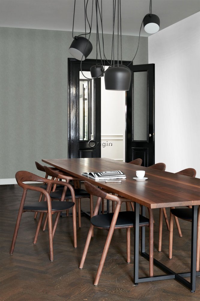 Graugrüne Vliestapete, Schlangenlederimitat.