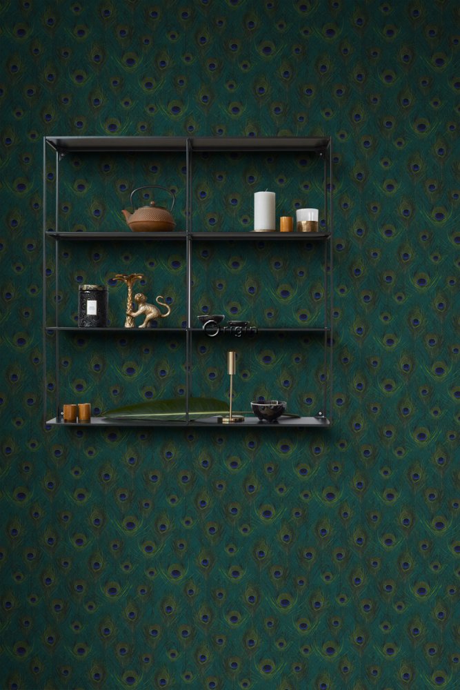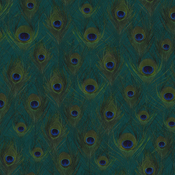 Grüne Vliestapete für die Wand mit Pfauenfedern 347764, Luxury Skins, Origin
