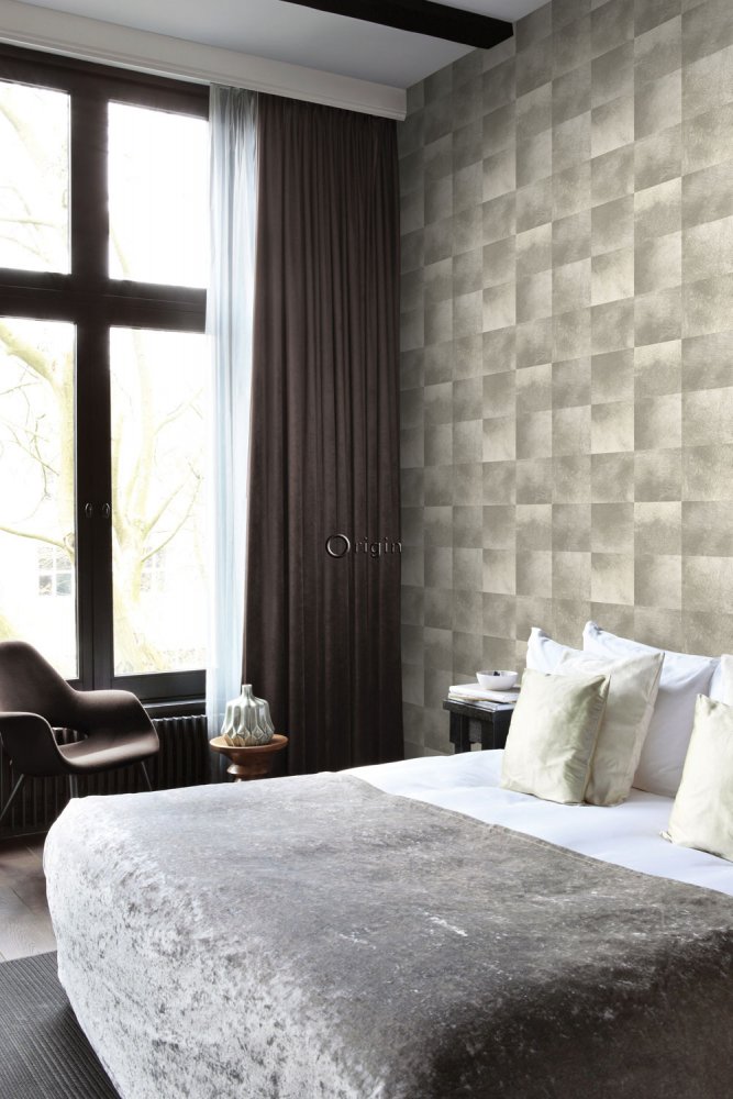 Graue Vliestapete für die Wand, quadratisches Muster Imitation Pelz 347323, Luxury Skins, Origin