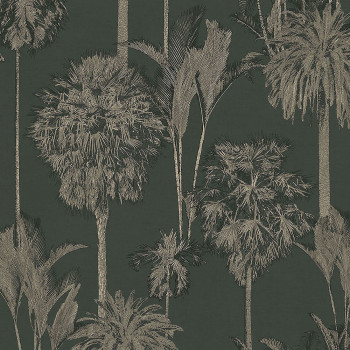 Dunkelgrüne Vliestapete für die Wand Oase, Palmen 317320, Oasis, Eijffinger
