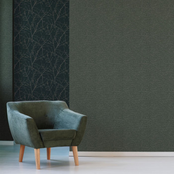 Vlies-, gestromt Tapete - Struktur feinem dunkelgrünem Stoff mit Reflexen in Roségold.