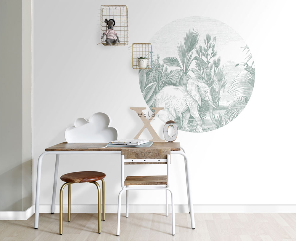 Selbstklebende kreisförmige Tapete Dschungel, Elefanten 159076, Durchmesser 70 cm, Forest Friends, Esta