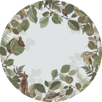 Selbstklebende kreisförmige Tapete, Motiv Wald und Waldtiere.