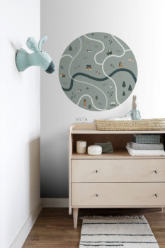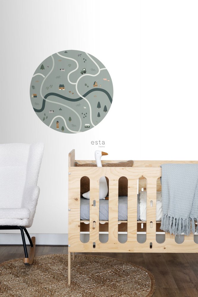 Selbstklebende kreisförmige Tapete Bauernhof, Straßen, Traktoren 159068, Durchmesser 70 cm, Forest Friends, Esta