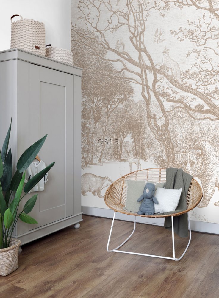 Forest Friends ist eine Kindertapetenkollektion von Esta, bei der Sie sich auf verspielte Waldtiere freuen können.
