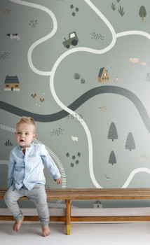 Wandbilder für Jungen, Bauernhofmotiv, Straßen, Traktoren. Die Tapete hat ein durchgehendes Muster, für eine größere Breite einfach ein weiteres Stück kaufen.