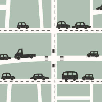 Grüne Vliestapete für die Wand, Tapete für Jungen, Autos, Straßen.