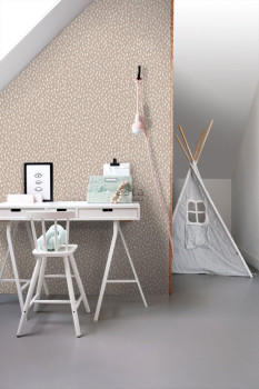 Vliestapete braun mit weißen unregelmäßigen Ovalen 139255, Forest Friends, Esta
