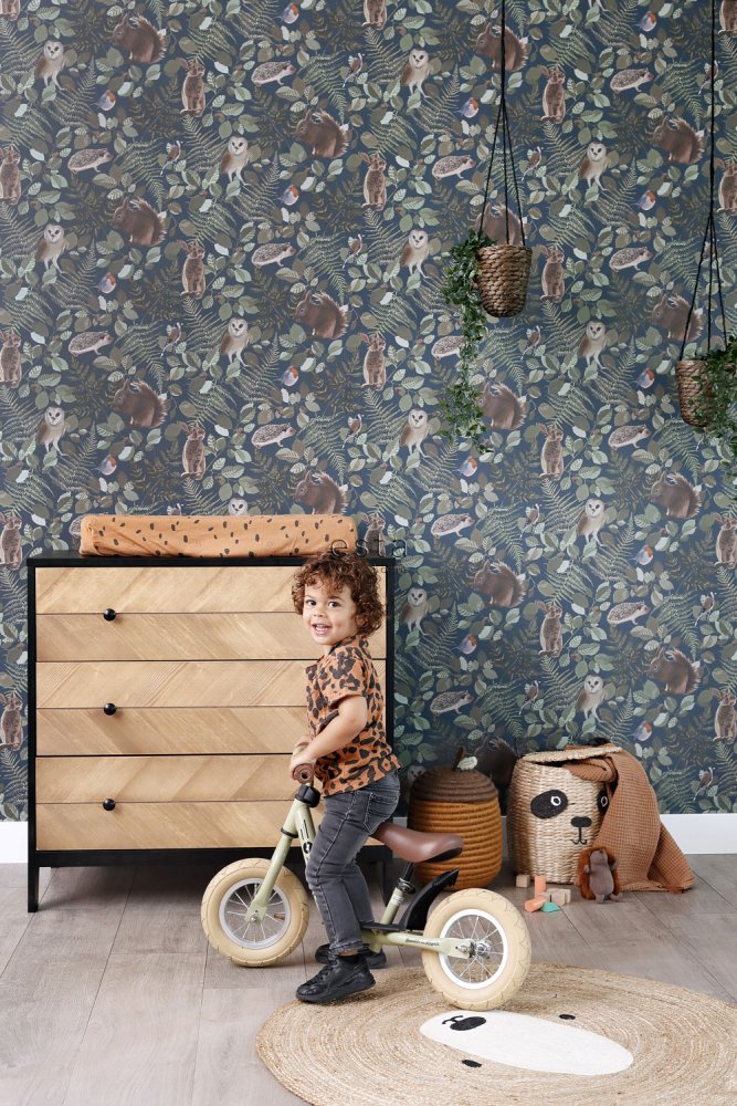 Blaue Vlies Kindertapete für die Wand Waldtiere 139250, Forest Friends, Esta