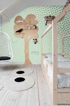 Menthol Vliestapete mit goldenen Punkten 139245, Forest Friends, Esta