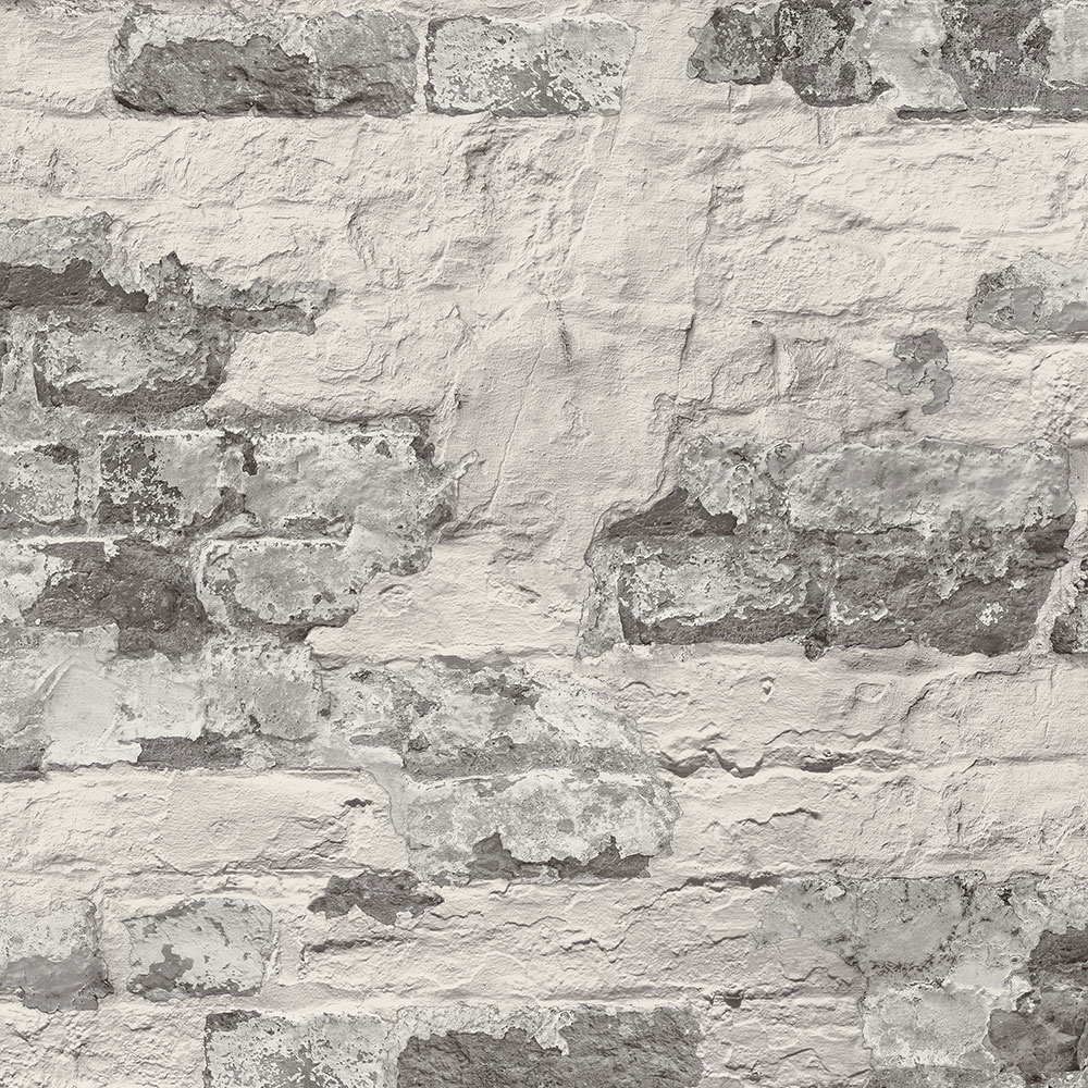 Graue Vliestapete für die Wand Ziegel, Backstein-Effekt.