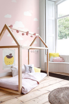 Vlies rosa Kindertapete mit weißen Wolken 158843, 1,86 x 2,79 m, Little Bandits, Esta