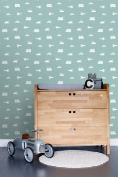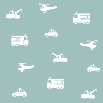 Türkis Vliestapete für Jungen Autos, Helikopter 128864, Little Bandits, Esta