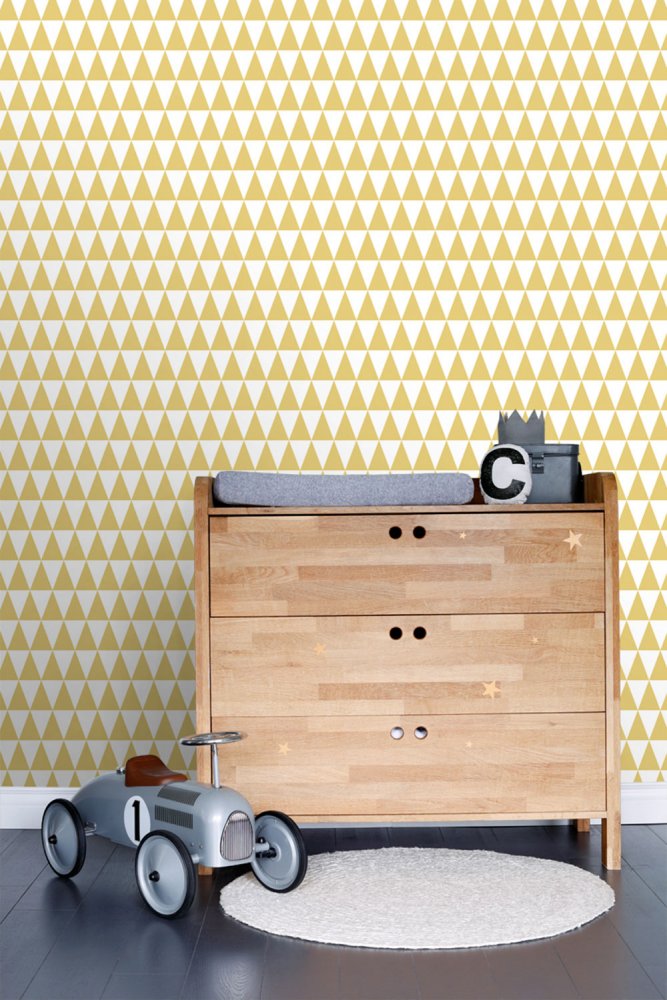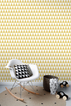 Vliestapete mit Ocker und weißen Dreiecken 128863, Little Bandits, Esta