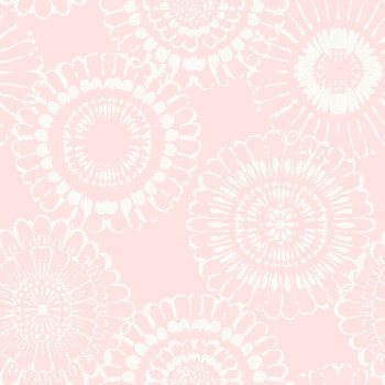 Rosa Vliestapete mit weißem Blumenmuster.