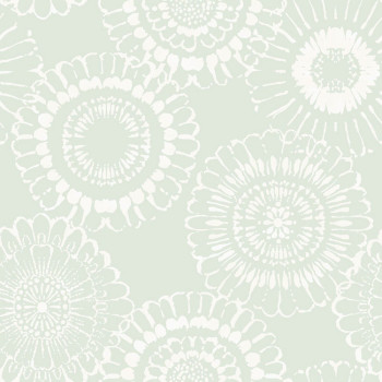 Grüne Vliestapete für die Wand mit weißem Blumenmuster.