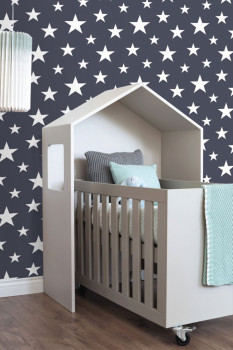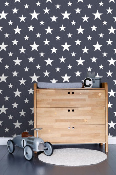 Dunkelblaue Vliestapete mit weißen Sternen 138933, Little Bandits, Esta