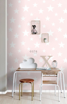 Rosa Vliestapete mit weißen Sternen 138931, Little Bandits, Esta