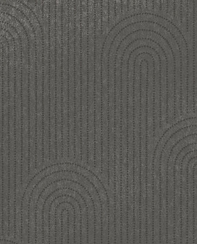 Art-Deco-Tapete mit geometrischem Muster in grau-schwarzen Farbtönen.