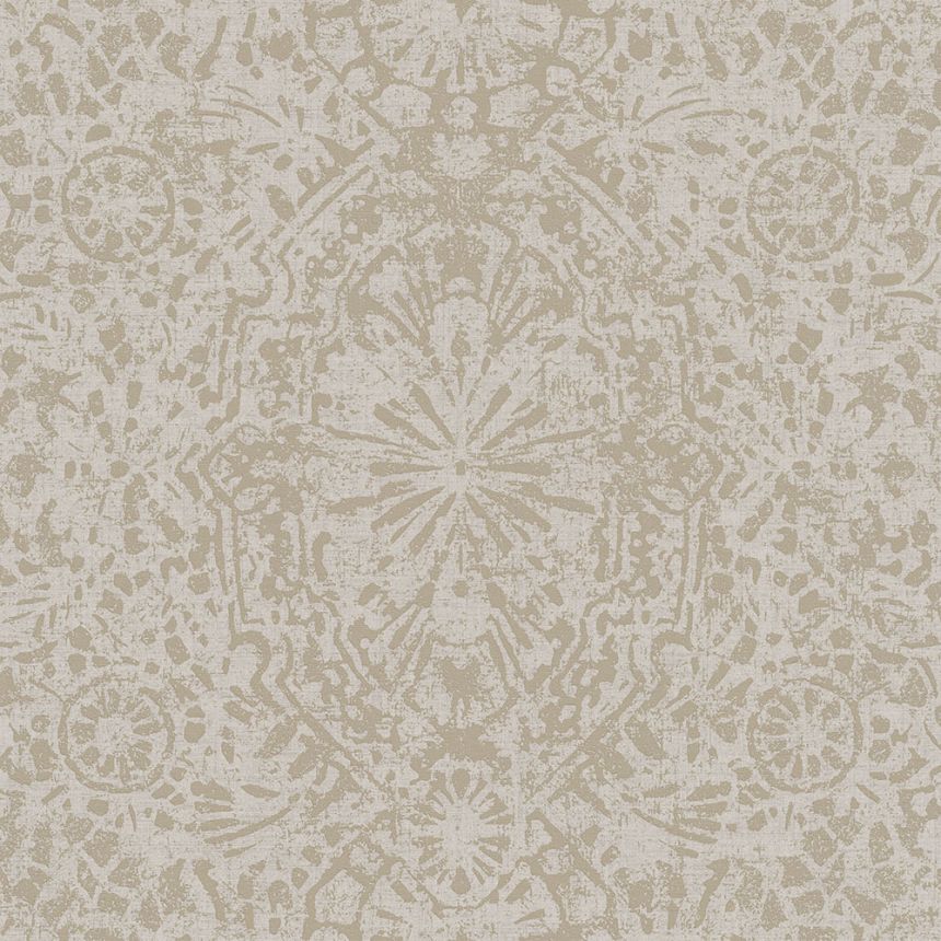 Ocker-beige Vliestapete, Damastmuster EE3104, Elementum, Grandeco