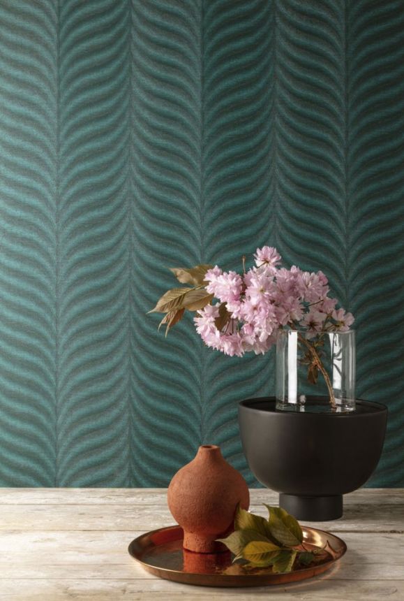 Grüne Vliestapete, grafisches Federmuster EE1304, Elementum, Grandeco