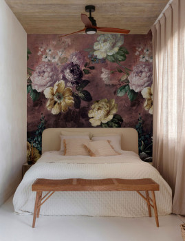 Vlies-Bildtapete mit Vinyloberfläche, florales Design mit handgemaltem Effekt.